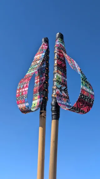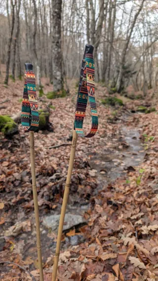 Bastones de bambú para trail running, perfectos para tus aventuras al aire libre. Material Bambú natural. Diseño 3 con correas estampadas par elegir. Con grip en la empuñadura para mejor agarre. Punta de tungsteno. Personalizalos con tu nombre GRATIS!! Hecho de manera artesanal en diferentes alturas: - Altura inferior a 156cm - Talla bastones 100cm - Altura 156cm a 164cm - Talla bastones 110cm - Altura 165cm a 174cm - Talla bastones 115cm - Altura 175cm a 182cm - Talla bastones 120cm - Altura 183cm a 190cm - Talla bastones 125cm - Altura superior a 190cm - Talla bastone 130