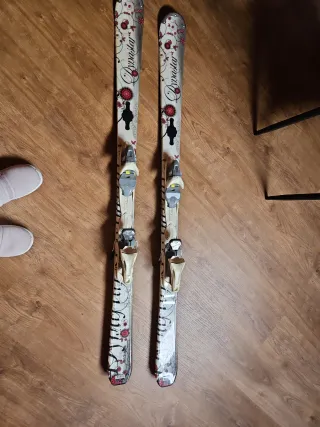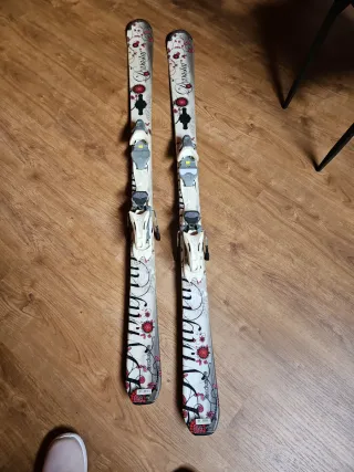 Esquís diseñados con un bonito estampado floral en tonos rojos y blancos. Ideales para disfrutar de la nieve con estilo. - Diseño floral detallado. - Fijaciones incluidas.