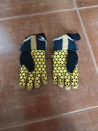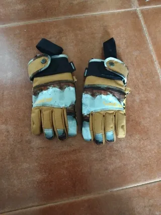 Par de guantes de nieve para niños, ideales para mantener las manos calientes en la montaña. Están como nuevos. - Diseño con estampado. - Cierre ajustable en la muñeca.