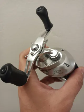 Carrete de pesca TACTICA KS51H plateado para la modalidad de spinning. Nuevo sin estrenar.Lo vendo por que yo pesco con otro tipo de carretes. - Diseño compacto y ligero. - Mango con acabado negro. - Logotipo de Shimano visible.