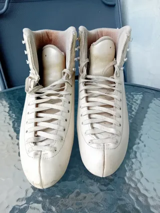 Bota de patinaje artístico Risport Giada. Bota con mucho uso pero se puede seguir usando. Signo desgaste en agujeros del cordón. - Talla 38. - Color perla - Cierre con cordones.