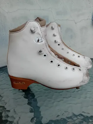 Bota de patinaje artístico Edea Esordio en talla 36. Usados con muchos rayones pero el interior bien. Tiene roto un enganche de un cordón pero se puede usar. - Color blanco. - Diseño de caña alta. - Cierre con cordones.