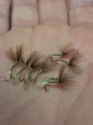 4 secas y 4 emergentes por color. Secas con hackle de gallo vivo y anzuelo dorado Fulling Mills. Emergentes en cdc y varivas 2200. Todos los colores mismo patron. 249. 977. 255. 431. 503. 300. 662. Tambien tintada de Au Chalet 2142 . Siltek 3256. 72 moscas en total. Todo en una caja. Cualquier duda preguntar sin compromiso