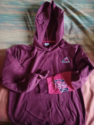 Sudadera con capucha de color granate, ideal para un estilo casual. - Diseño con logo triangular en la parte frontal. - Manga con detalle de color rosa y texto COLORADO SNOWBOARD.