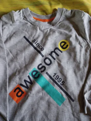 Sudadera gris con estampado frontal. - Diseño awesome since 1995. - Detalles en naranja, verde y amarillo.
