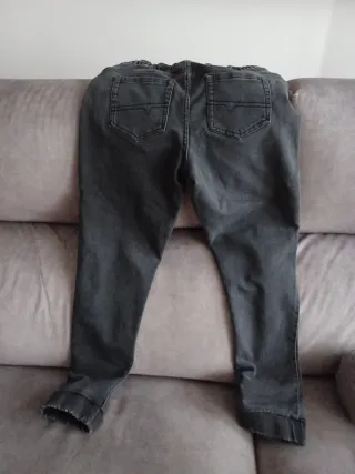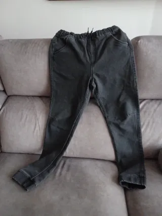 Vaqueros grises de corte cómodo, ideales para el día a día. - Cintura elástica con cordón. - Bolsillos delanteros. - Detalle de costuras en las rodillas. - Bajo con puño.