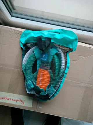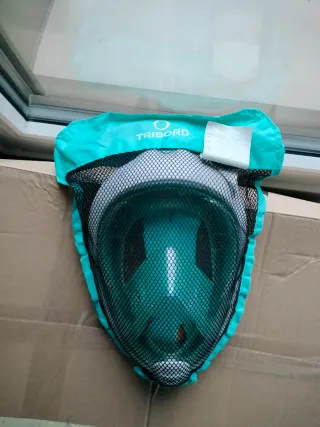 Careta de buceo completa, ideal para explorar el mundo submarino. Viene con su propia bolsa de malla para facilitar el transporte y el secado. - Color turquesa. - Bolsa de malla incluida.