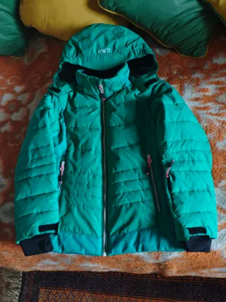 Conjunto de esquí para niña de la marca CMP, talla 9 años. Incluye chaqueta y pantalón. - Chaqueta de color verde brillante. - Pantalón a juego. - Cremalleras y detalles en contraste.
