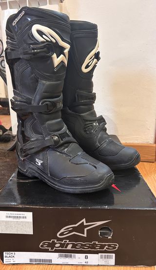 Botas de motocross Alpinestars Tech 3 en color negro, como nuevas. Con la caja original - Modelo Tech 3. - Color negro. - Talla 8 US / 42 EUR. -usadas solo 1 vez