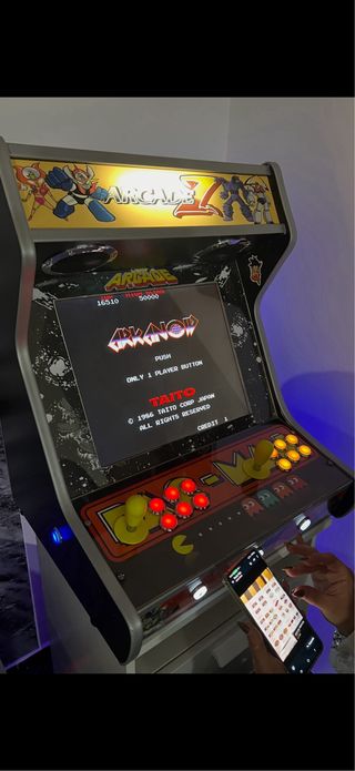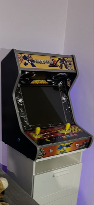Máquina recreativa estilo arcade con diseño retro. - Panel de control con joysticks y botones. - Gráficos temáticos de videojuegos clásicos. - Sonido increible suena fuertisimo - 700 juegos arcade comecocos, tetris, todos vaya Tambien acepto cambios por algo que me interese