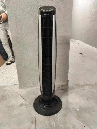 Ventilador vertical - Mando a distancia - Color negro y plateado. - Fabricado en plástico resistente.