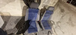 Juego de asientos delanteros para Seat Ibiza modelo 6K2. Tapicería con diseño en azul y gris. - Tapicería de tela. - Reposacabezas integrados.