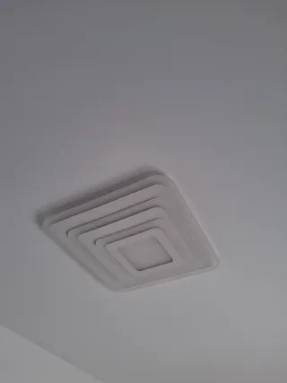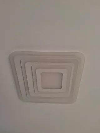 Luminaria de techo con un diseño moderno y elegante. - Forma cuadrada escalonada. - Acabado en color blanco. La puedes encender en luz blanca Luz calidad y combinación de ambas. Puedes regular la intensidad con mando a distancia