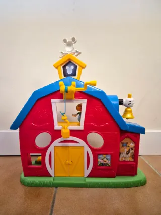 Divertido juego de la Granja de Mickey Mouse. Incluye varios personajes y accesorios. Casi sin uso. - Granja de Mickey Mouse con sonido. - Incluye figuras de Mickey, Donald, y una vaca. - Accesorios como tractor, huevos y cestos.