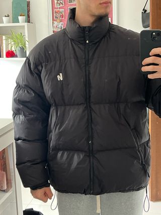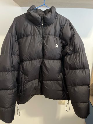 Chaqueta de plumas acolchada con cuello alto. Perfecta para ski, deportes de montaña o días de frio. - Cierre de cremallera frontal. - Logo blanco en el pecho. - Cordones ajustables en el bajo.