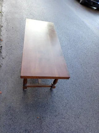 Elegante mesa antigua de nogal con un diseño clásico. Su superficie es amplia y su estructura robusta. - Material: Madera de nogal. - Color: Marrón.