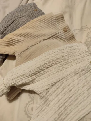 Conjuntos de ropa para bebé, marca Zeeman, talla 44 cm. Incluye body cruzado y pantalón. - Tonos neutros y pastel. - Cierre de botones a presión en el body. - Pantalones con cintura elástica. - Pequeña mancha (ver foto) en uno de los bodies
