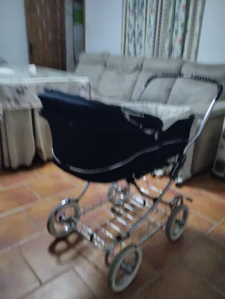 Carrito de bebé en excelente estado, casi sin uso. - Estructura metálica cromada. - Capazo amplio y cómodo. - Ruedas con detalles blancos.