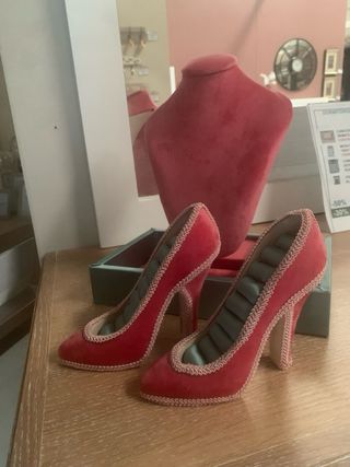 Expositor Joyas Terciopelo Rojo y Base Verde