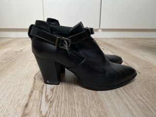 Botines de piel con un diseño moderno y elegante. - Cierre con hebilla. - Tacón grueso.