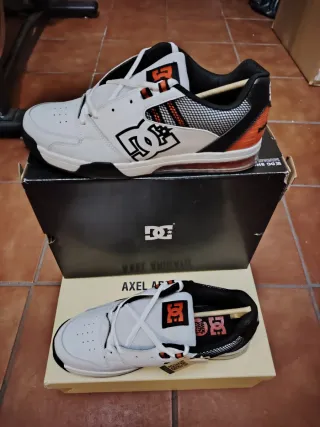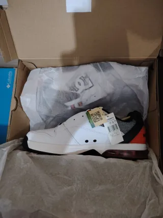 Zapatillas DC de piel en color blanco, talla 46. Nuevas a estrenar. Inclu - Cierre de cordones. - Detalle de malla en el talón. - Suela con amortiguación visible.