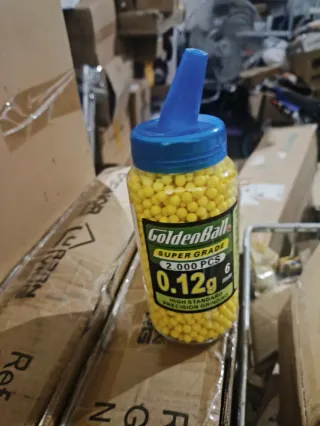 Bolsa de bolas de precisión Goldenball. - 2000 unidades. - Peso: 0.12g. - Calibre: 6mm. - Acabado de alta precisión.