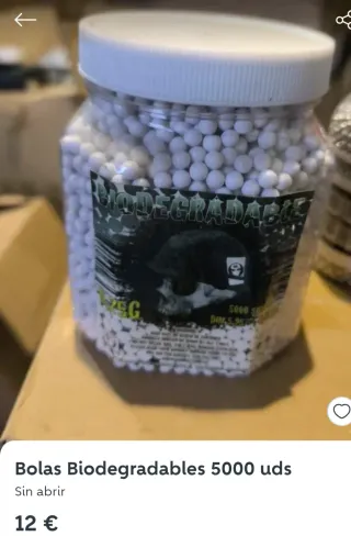 bolas biodegradables para airsoft. - 5000 unidades. - Peso: 0.25g. - Diámetro: 5.95mm.