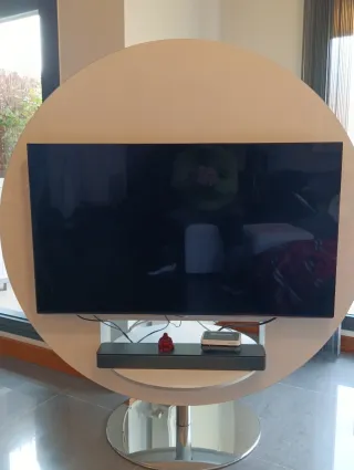Este mueble para televisión cuenta con un diseño moderno y funcional, perfecto para tu salón. Para no salir del diámetro entra una tele de 48 o 50 pulgadas. Muy practico - Base giratoria 360 grados, para ajustar el ángulo de visión. - Acabado en color beige y detalles plateados. - Fabricado con materiales resistentes.