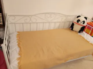 Se venden dos somieres de 105cm, cada uno con su colchón y cabezal a juego. Listos para usar. - Estructura de metal y láminas de madera. - Incluye dos colchones. - Incluye dos cabezales. Regalo mesilla y edredrones