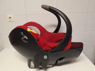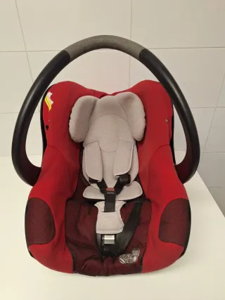 Silla de coche para bebé, grupo 0+. Diseñada para la seguridad y comodidad de los más pequeños. - Color rojo y gris. - Incluye reductor para recién nacidos. - Arnés de seguridad de 5 puntos. - Asa de transporte. - Capota para el sol.