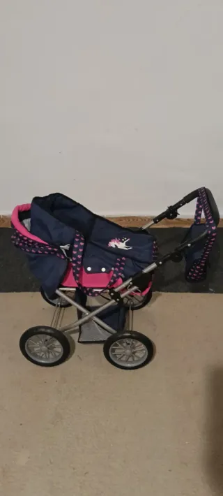 Este cochecito de muñecas es versátil y práctico, ideal para llevar a tus muñecos de paseo. Incluye un bolso a juego. - Diseño 2 en 1. - Incluye bolso de transporte. - Estampado de corazones rosas y unicornio.