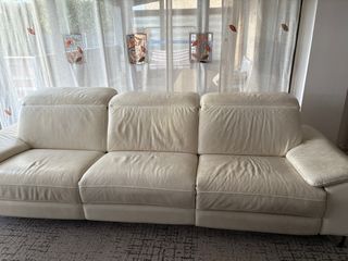 Sofá de tres plazas en un bonito tono beige. - Tapicería de piel. - Diseño moderno y elegante. - Relax: Reclinable eléctrico en las tres plazas.