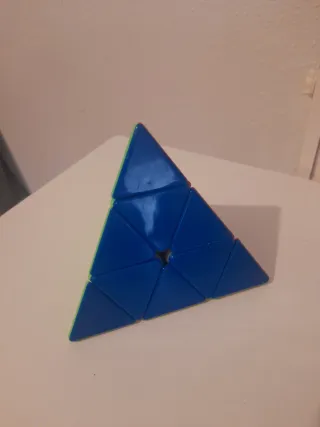 Rompecabezas tipo cubo de Rubik con forma piramidal. Ideal para coleccionistas y aficionados a los desafíos. - Color principal verde. - Detalles en amarillo.
