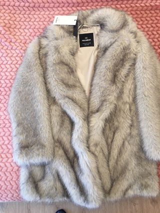 Abrigo de pelo sintético de la marca Pull&Bear. - Tacto muy suave y agradable. - Diseño abierto sin cierre. - Color grisáceo con matices beige.