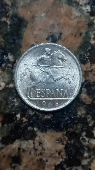 Moneda de 5 céntimos de España del año 1945. Presenta un diseño con un jinete. Sin circular con brillo original. - Año: 1945 - País: España - Denominación: 5 céntimos MAS MONEDAS Y BILLETES EN MI PERFIL. ENVÍO WALLAPOP, CORREO ORDINARIO O EN MANO.