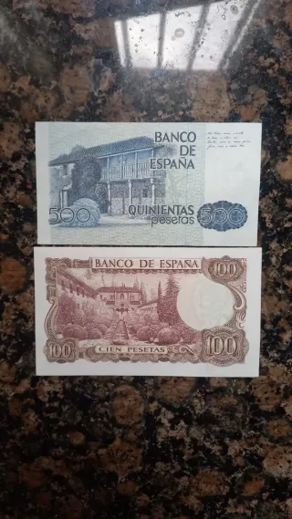 Sin circular 2 Billetes Pesetas España 100 y 500