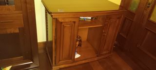 Mueble aparador de madera maciza con un diseño clásico y elegante. - Elaborado en madera maciza. - Presenta tallados decorativos. - Amplio espacio de almacenamiento.