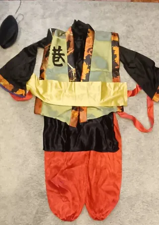 Disfraz tradicional de samurái, ideal para fiestas temáticas o representaciones. - Incluye kimono, pantalón y cinturón. - Diseño con detalles orientales. - Talla M.