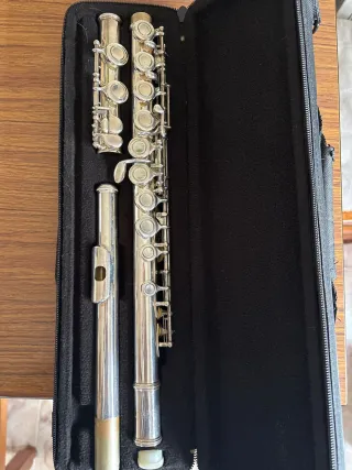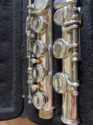 Flauta travesera Ashton en su estuche. Vendo flauta travesera marca Ashton, ideal para principiantes, estudiantes o iniciación en escuela de música. Detalles: • Marca: Ashton • Material: metal plateado • Incluye: • ✅ Funda original con cremallera • ✅ Paño de limpieza • ✅ Cera para el mantenimiento • Número de serie visible (ver fotos) 🔹 Estado: • Flauta usada, ha estado tiempo guardada • Limpieza reciente del metal exterior • Instrumento completo y estructuralmente en buen estado • Llaves rectas y sin golpes • Zapatillas enteras, con color amarillento por el paso