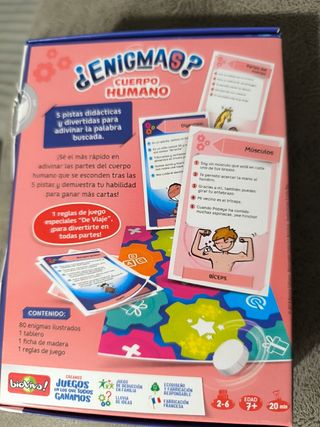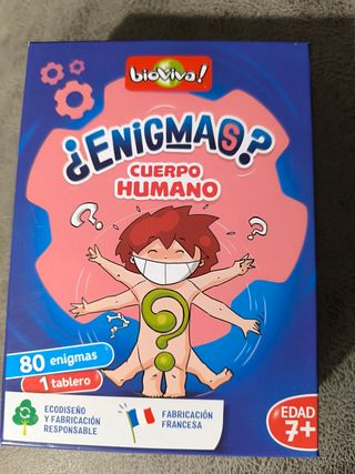 Juego de mesa Enigmas - Cuerpo Humano de Bioviva. Ideal para aprender sobre el cuerpo humano de forma divertida. - Incluye 80 enigmas. - Contiene 1 tablero. - Diseño y fabricación responsable. - Fabricación francesa. - Edad recomendada: 7+.