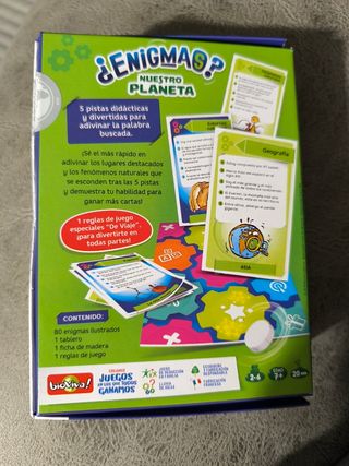 Juego de mesa Bioviva Enigmas Nuestro Planeta. - Contiene 80 enigmas y 1 tablero. - Fomenta el aprendizaje sobre el planeta. - Fabricación francesa. - Edad recomendada: 7+ años.