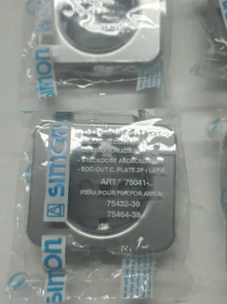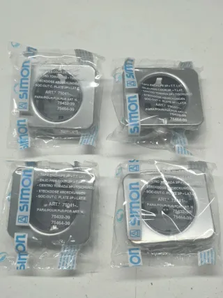 Se venden 4 tapas para enchufes Simon 75. - Modelo: 2P+T.T. LAT. - Referencia: 75041-. - Códigos adicionales: 75432-39, 75464-39. - 1 Teclade interruptor. - 1 Mecanismo de interruptor. - Yal y cómo se ven en las fotos