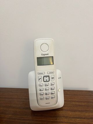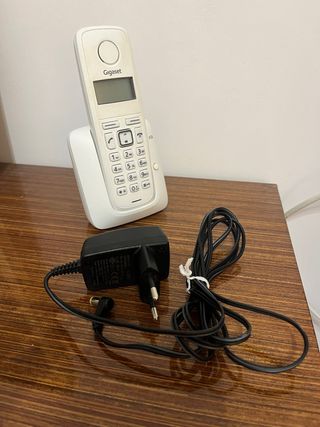 Teléfono inalámbrico con base de carga y adaptador de corriente. - Diseño elegante en color blanco. - Teclado numérico completo. - Pantalla LCD. - No se ha usado nunca.