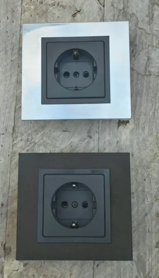 Conjunto de mecanismos de enchufe Simón 82 Nature. Diseñados con un acabado que evoca la naturaleza. - Acabado en color negro. - Marco exterior en acabado metálico plateado. - Enchufes completos a 15€ cada uno, tal y como se ven en las fotos. - Interruptor conmutador completo. - Tal y como se ven en las fotos.