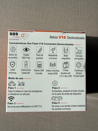 Baliza de emergencia V16 geolocalizada. - Conexión con Telefónica Tech. - Conectada con la DGT 3.0. - Conexión IoT.