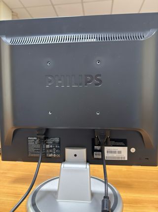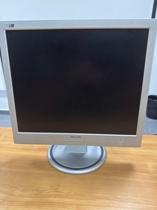 Lote de diez monitores LCD Philips de 17 pulgadas. - Color plata y negro. - Pantalla de 17 pulgadas. Entrada VGA Con peana inclinable hacia atras Incluye cable de corriente No incluye cables vga