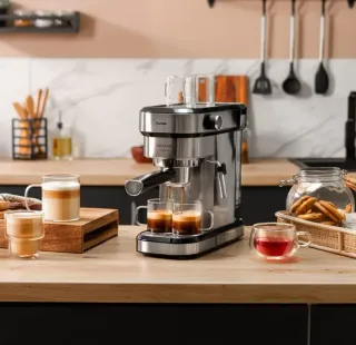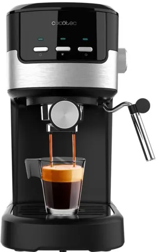Cafetera espresso compacta de la marca Cecotec. Diseñada para un uso sencillo y eficiente. - Acabado en negro y plateado. - Incluye brazo para café molido y monodosis. - Vaporizador orientable para espumar leche.