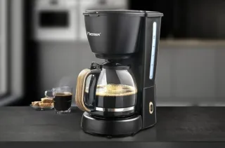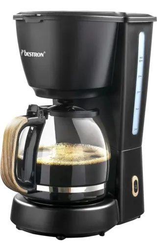 Cafetera de filtro Bestron con capacidad para 10 tazas. - Diseño moderno en color negro. - Jarra de cristal. - Indicador de nivel de agua.