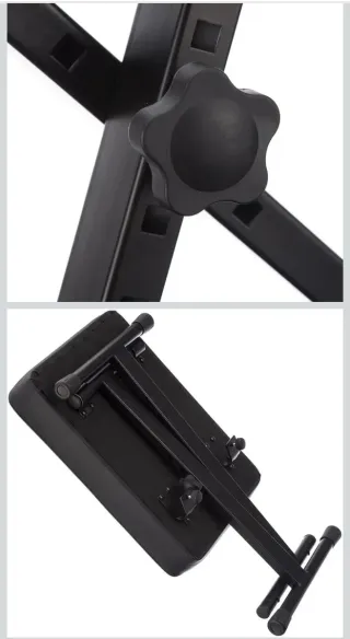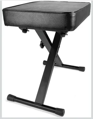 Banco de teclado acolchado de Rockjam, con altura ajustable. - Asiento acolchado. - Estructura metálica resistente. - Altura regulable mediante perillas.