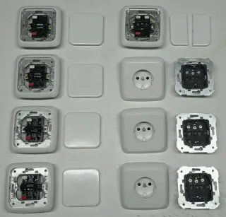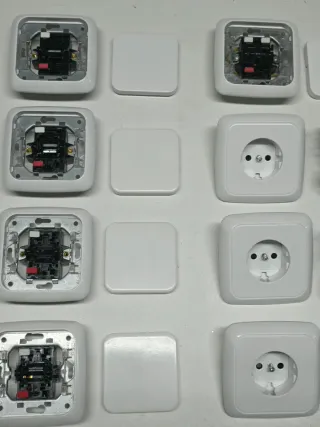 Conjunto de mecanismos y tapas para interruptores y enchufes Simón 31 en color blanco. - 4 Mecanismos de interruptor completos. - 3 Mecanismos de enchufe completos. - 1 Interruptor doble completo. - Tal y cómo se ven en las fotos.